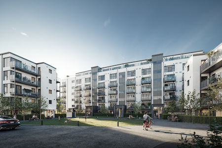- Two roundel buildings of 4 and 5 storeys with complex façade geometry and corner angles of up to 170 degrees