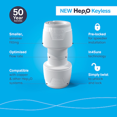 Leading plumbing and drainage manufacturer, Wavin, has expanded its plastic push-fit offering with the launch of its fifth-generation fitting, Hep2O Keyless.
