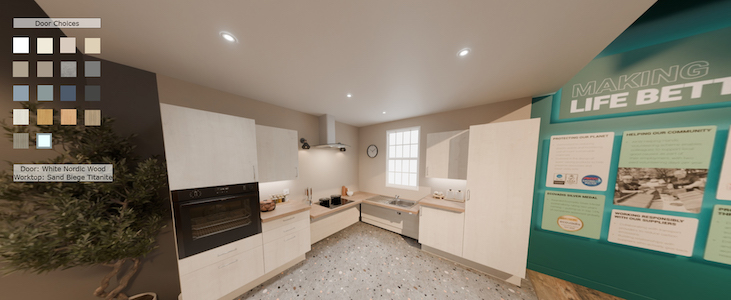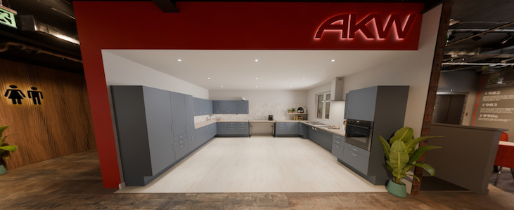 The virtual kitchen showroom complements AKW’s physical showrooms in Droitwich Spa and Middlewich, offering flexible product selection options depending on project needs and location. Together, the digital and in-person environments provide practical support throughout the specification process.