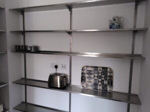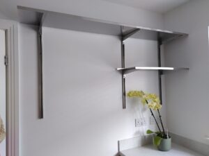 The uprights of each stainless steel shelving unit allow simple ‘stepless’ adjustment (un-slotted linear adjustment) of shelf positions to wherever required using a single locating bolt per bracket. This versatile system provides more ergonomic and efficient way of working for the user.